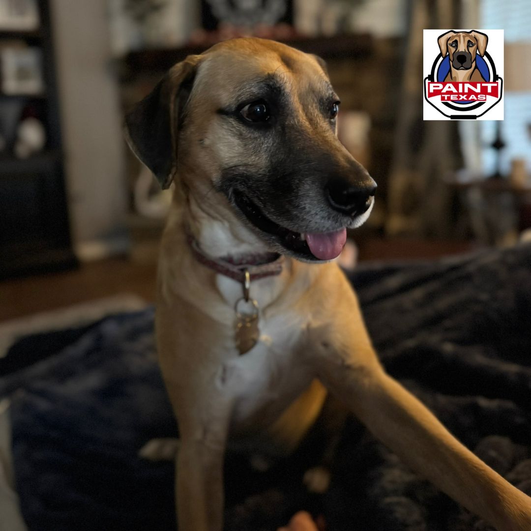 The Paint Texas logo has a story. It’s inspired by Clyde—our loyal family dog and the face of our brand. Ever since he became the logo, I’ve jokingly referred to him as our “Jerry West.” He (and his sister, Quin!) is a big part of our family and occasionally tags along on job visits. Clyde represents loyalty, trust, and the friendly personality behind Paint Texas.